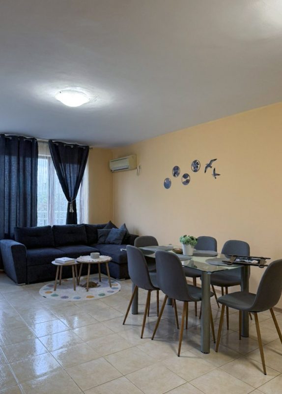 Zum Verkauf steht eine komplett möblierte Zweizimmerwohnung mit einer Fläche von 84 m² in der Gegend von Inkantalaka, zwischen Balchik und Kavarna, 100 m vom Strand entfernt.