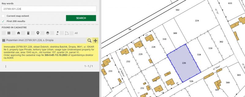 | Dorf: DROPLA (Einwohner: 167) - 43 Häuser Durchschnittspreis DROPLA - € 26414 DOBRICH Bezirke - 5536 Häuser Durchschnittspreis DOBRICH Bezirke - € 32895 | ||||