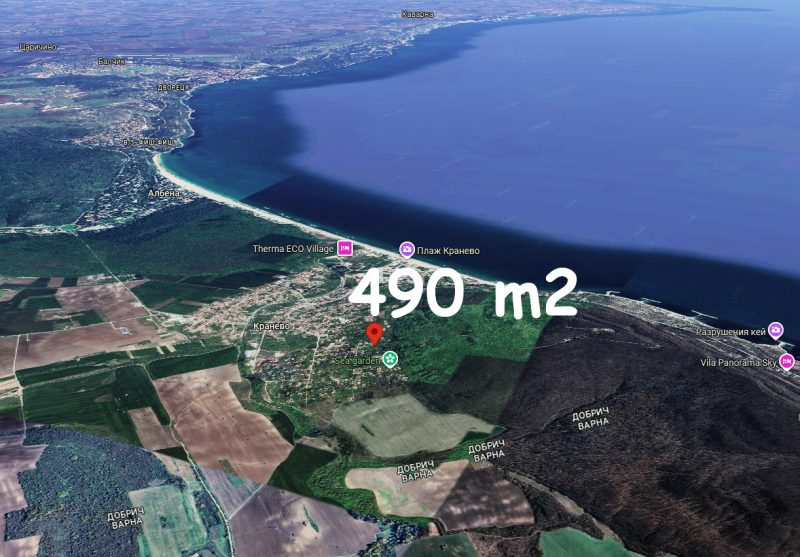 Zum Verkauf steht ein 490 m² großes Baugrundstück im Dorf Kranevo, Gebiet Polyanit, Region Dobritsch, 2 km vom Meer entfernt.