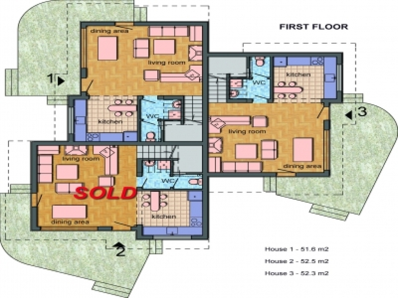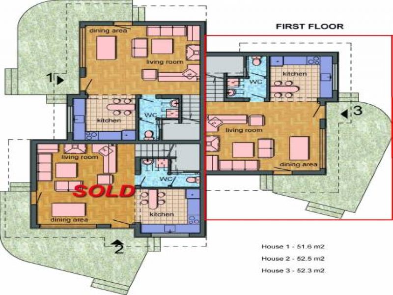 - Haus 1 116,3 m2 Wohnfläche, 197 m2 Garten; VERKAUFT