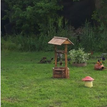 Der Garten ist mit einer Fläche von 500 m2 und ist mit Obstbäumen bepflanzt. Es gibt einen Parkplatz.