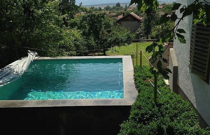 In der Rückseite des Hofes befindet sich ein Swimmingpool mit Größe: 4 m 4 m und die Tiefe - 2 m, das ist genug, um an heißen Sommertagen Abkühlung ist. Wasser aus dem Schwimmbad kann für die Bewässerung verwendet werden. Es ist ein Wasserbehälter mit einem Fassungsvermögen von 800 Litern und eine Wasserpumpe.