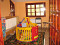 There is a dining room with a kitchenette, a living room with a fire place and a bathroom with WC on the first floor.