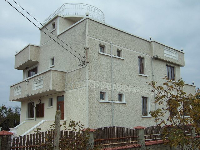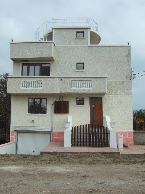 Das Haus besteht aus 11 Zimmern auf 330 qm Nutzfläche: im Erdgeschoss - zwei Schlafzimmer, großes Bad und Küche, sowie integrierte Garage. Im ersten Stock - ein Speisesaal in der Mitte mit offener Küche, zwei Schlafzimmer auf beiden Seiten, Bad, WC und kleiner Abstellraum auf der Rückseite.