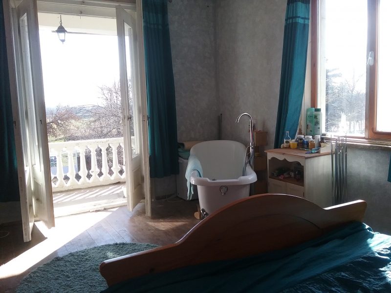 - führende Hall-Bereich sehr große Hauptschlafzimmer mit Doppelterrassentüren auf vorderen Balkon mit Blick auf den Garten, die Felder und Hügel und ein weiteres Schlafzimmer mit Doppelbett auch mit Doppelterrassentüren auf den Balkon