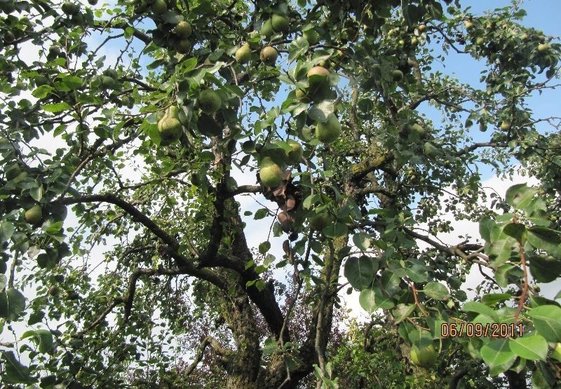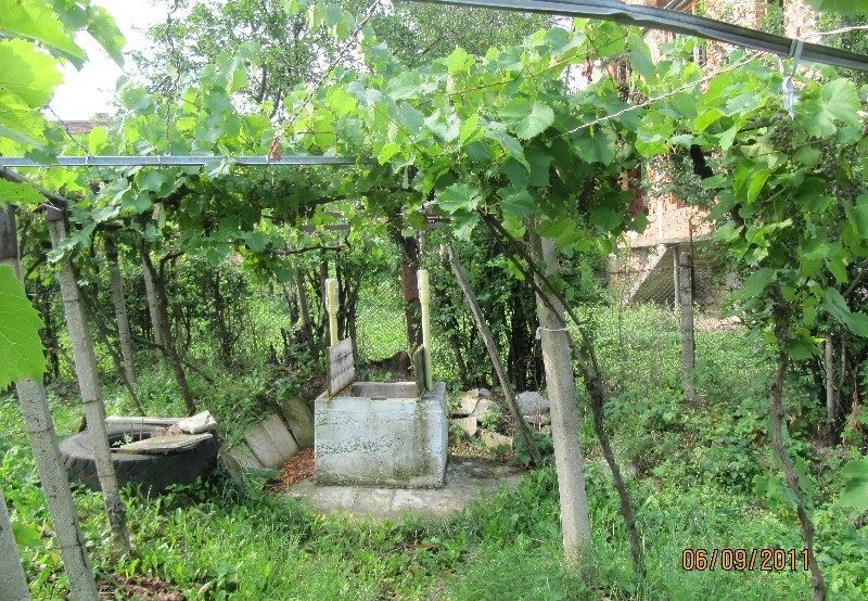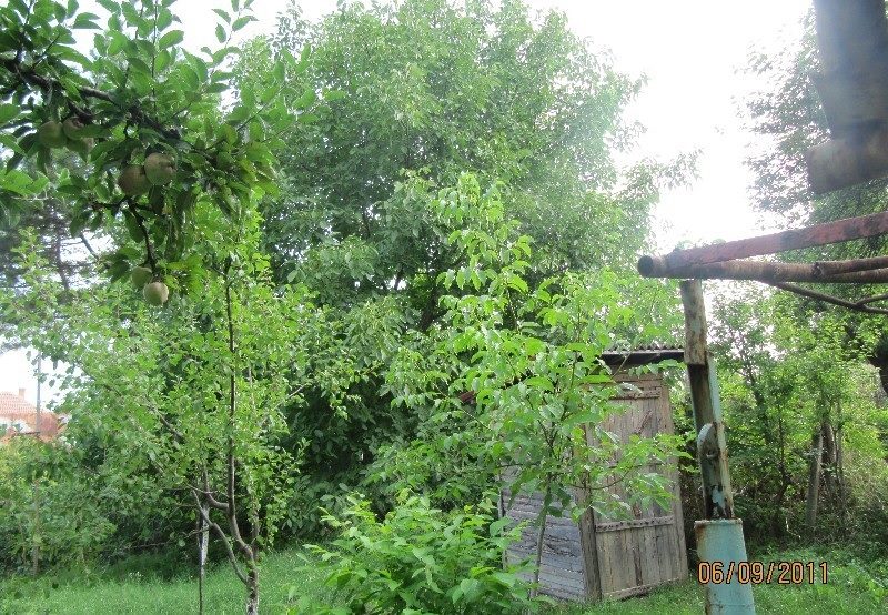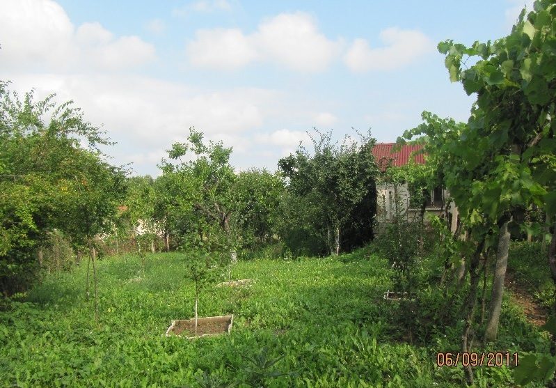 Die Größe des Gartens ist 1300 qm Es gibt viele Obstbäume und einen Brunnen.