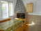 Erdgeschoss: Wohnzimmer mit Kochnische und Kamin, Schlafzimmer, Bad, Treppe zum zweiten Stock;
