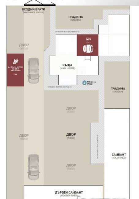- Blumengarten, vor dem Haus (geeignet für den Bau einer Garage)