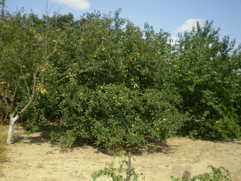 Yard-Bereich ist 700 Quadratmeter. Es hat viele Obstbäume. Der Hof ist auf der asphaltierten Straße und mit einfachem Zugang für Autos. Es ist eine Gelegenheit, einen Swimmingpool und einen Grillplatz zu bauen.