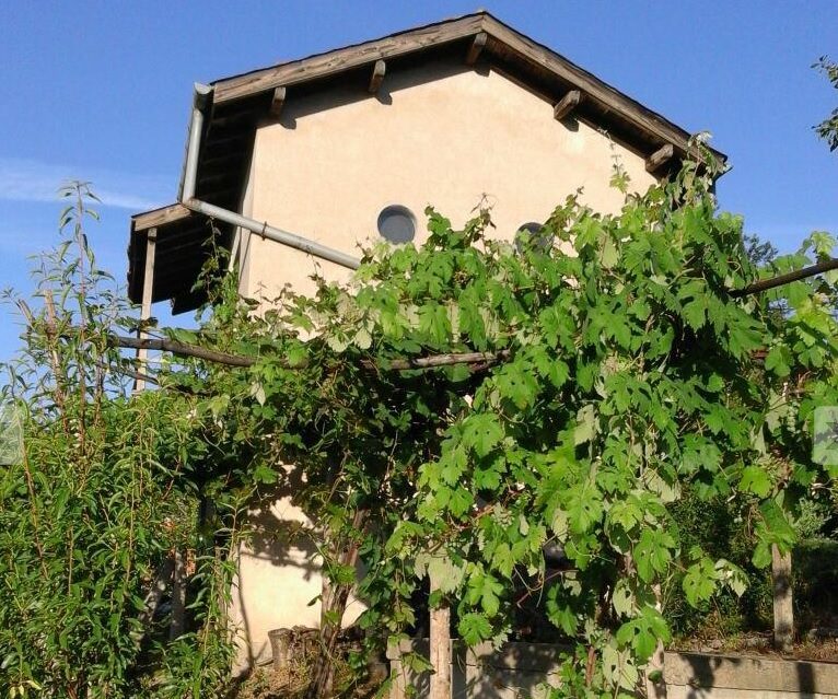 Die Größe des Gartens ist 900 qm Obstbäume und einen Weinberg.