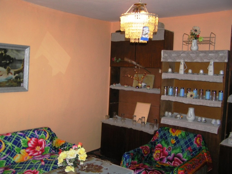 Das Haus ist auf einer Etage und besteht aus drei separaten Zimmern. Eines der Zimmer ist eine Küche und ein Esszimmer, ein weiteres Zimmer ein Wohnzimmer und dritte Raum ist ein Schlafzimmer. Von außen sieht das Haus mit Kalk verputzt und Zement vor einem Jahr, ist das Innere mit Kalk verputzt und gestrichen mit farbigen Latex. Das Haus in die zentrale Kanalisation für Abwasser eingebaut ist.