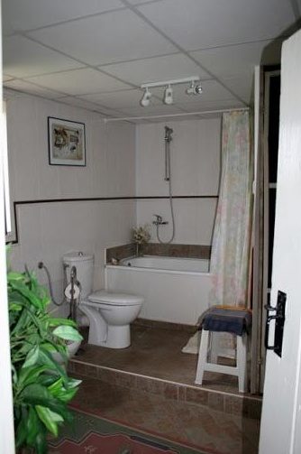 Bodenbelag: Wohnzimmer - Holzböden, Küche, Badezimmer - Terrakotta; Schlafzimmer - Laminat