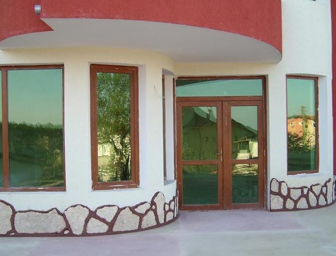 Bauvorgaben: monolithische Stahlbetonkonstruktion; Dachkonstruktion - Mineralwollisolierung, Holzverkleidung und Keramikfliesen; Keramikziegel aus der Fabrik in General Toshevo;