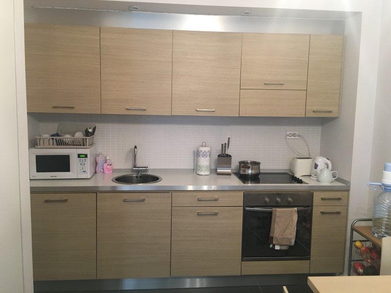 Die Wohnung nimmt etwa 55 Quadratmeter (Wohnraum in der Wohnung) und eine Veranda von 16 Quadratmetern.