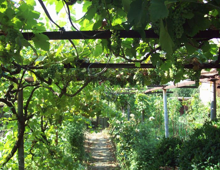 - Im Garten - eine Rebe, ein Brunnen, Obstbäume,