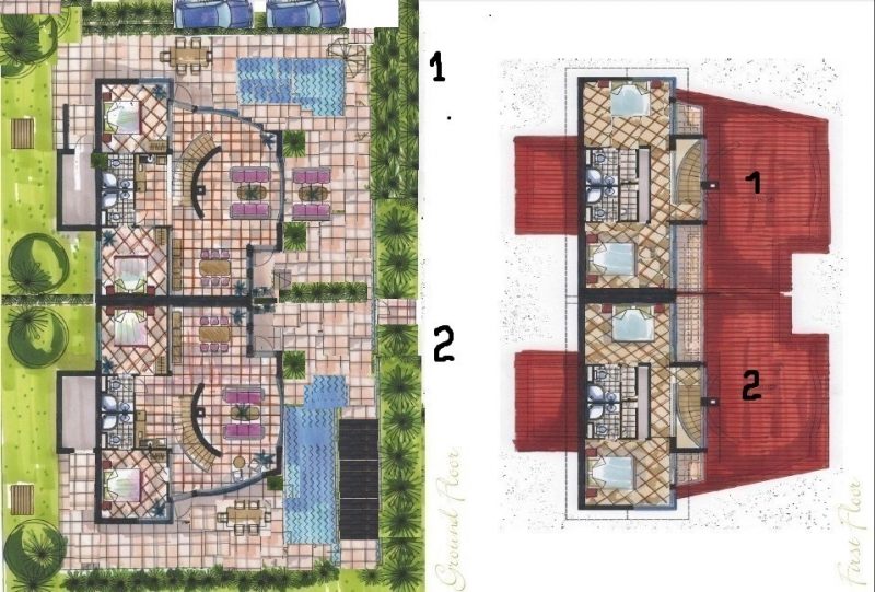 - Floor 2 - Einbauschränke, 2 Schlafzimmer mit 2 Badezimmern und Toiletten,