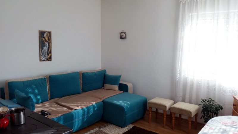 Das Haus wurde renoviert, es gibt PVC-Fensterrahmen, Laminat.