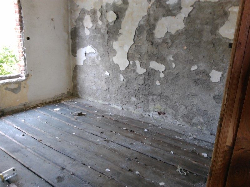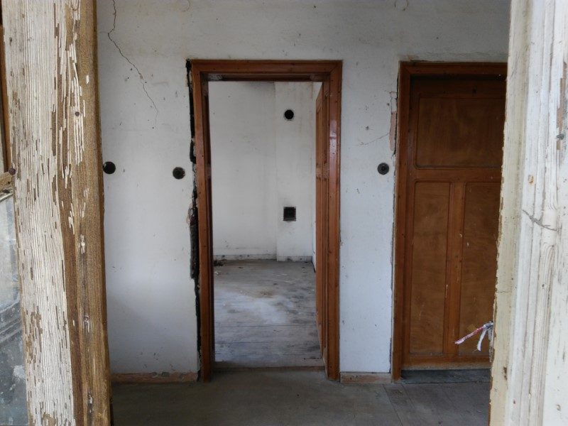 - Erster Stock: Flur, Küche, 2 Zimmer, Badezimmer.