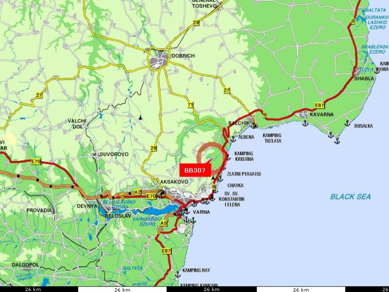 - Varna (Flughafen): 20 km