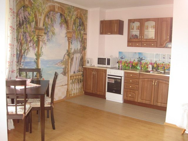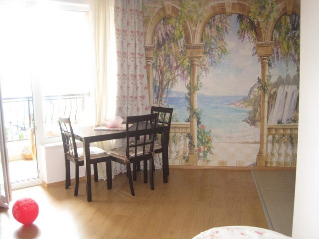 Im Wohnzimmer an der Wand gibt es ein Fresko (keine Fototapeten).