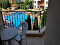 Die Wohnung ist möbliert, renoviert, mit Blick auf den Pool.