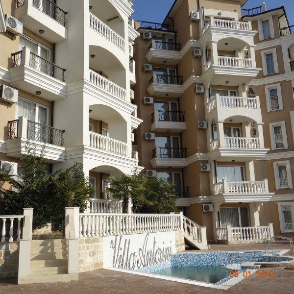 Zum Verkauf ein wunderschönes Studio in einem ganzjährigen Komplex Villa Antorini, 150 Meter vom Strand von St. Vlas entfernt. Der Komplex ist für seine hochwertige Bauweise und die ganzjährige Infrastruktur der Region bekannt.