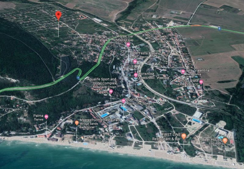 - 320 m² Grundstück, reguliert, mit Wasser und Strom, in der Villenzone des Dorfes Kranevo, 1500 m. vom Meer und von Albena und Goldstrand für 40 min.
