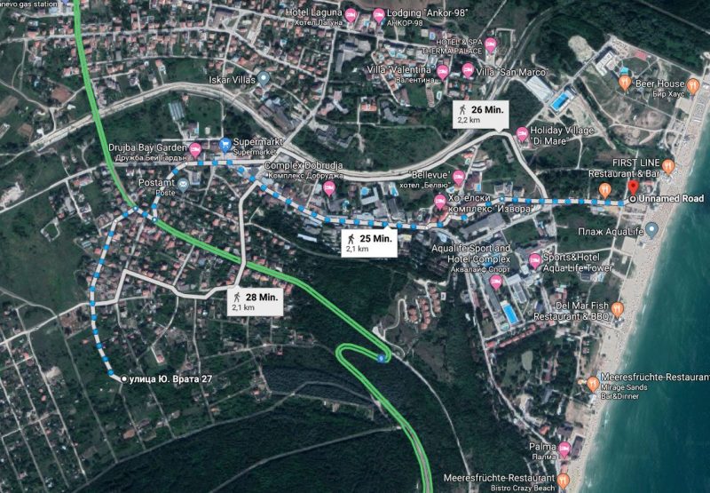 - Die Liegenschaft befindet sich 700 m. vom Zentrum von Kranevo. 600 m. Eine Bushaltestelle mit Verbindungen nach Varna, Balchik und Dobrich befindet sich in unmittelbarer Nähe.