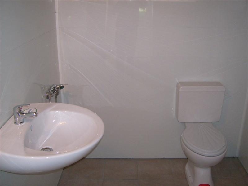 Die sanitären Anlagen sind komplett fertig und eingerichtet, sind die Bodenbeläge mit Terrakotta und Fayence.