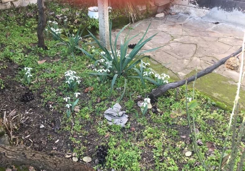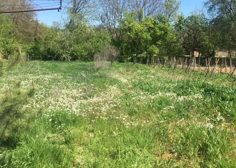 Die Gartengröße beträgt 800 qm. mit einigen landwirtschaftlichen Gebäuden, Parkplätzen und verschiedenen Obstbäumen und Blumen. Das Anwesen ist auf zwei Straßen ausgerichtet.