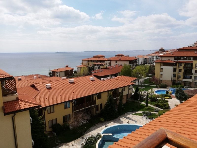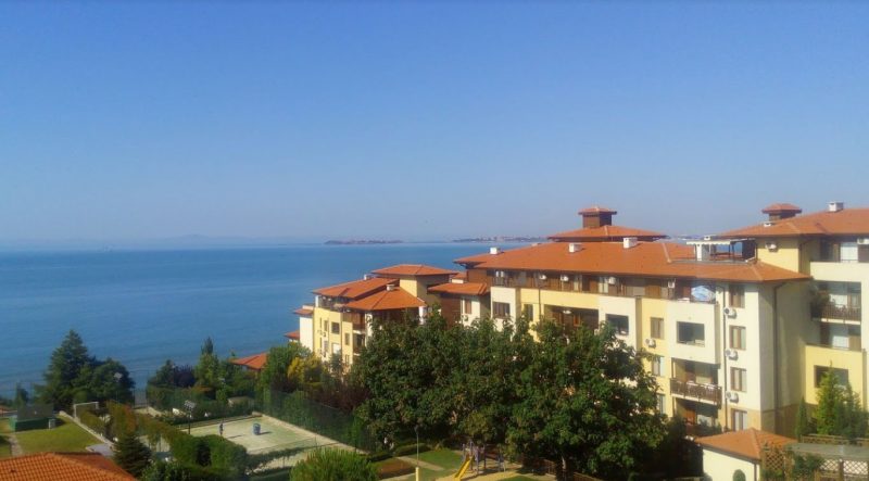 Panorama-Apartment mit 1 Schlafzimmer und direktem Meerblick sowie einer großen Terrasse in Paradise Garden, St. Vlas, direkt am Meer.