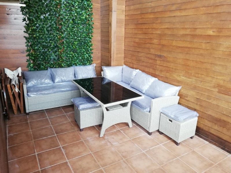 - Der Preis beinhaltet eine Reihe von Möbeln für eine Terrasse, die Sie auf dem beigefügten Foto sehen können.