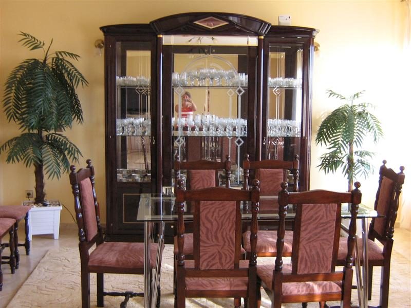 - Esszimmer - Esstisch aus Glas, 12br. Stühle, Kristall Fenster