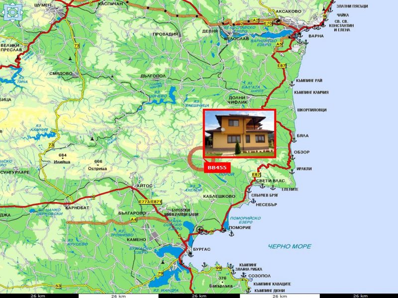 - Burgas (Flughafen): 38 km.