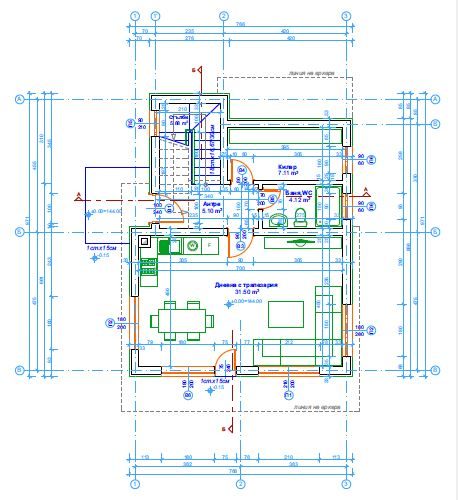 - Der erste Stock verfügt über eine Eingangshalle, Wohnzimmer mit Küchenzeile, Schlafzimmer, Bad mit WC, Abstellraum, Treppe zum zweiten Stock.