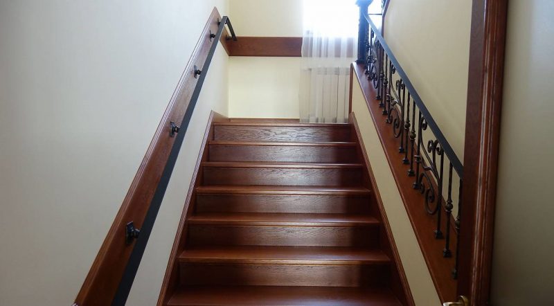 Treppe zum zweiten Stock - massive Eiche und Schmiedeeisen.