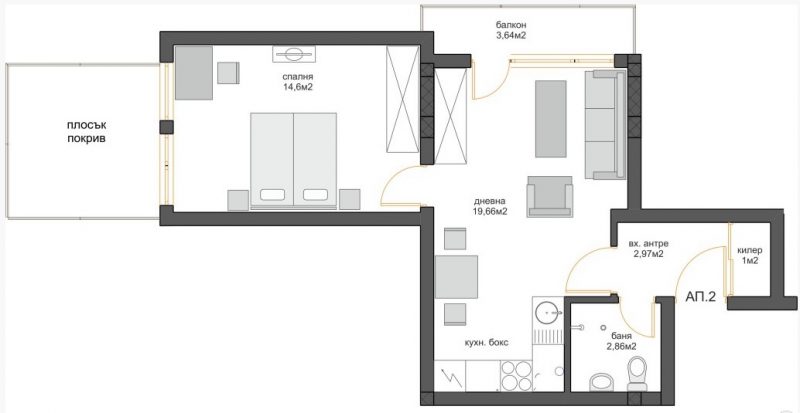 61,55 qm 1 Zimmerwohnung, 300 m zum Meer