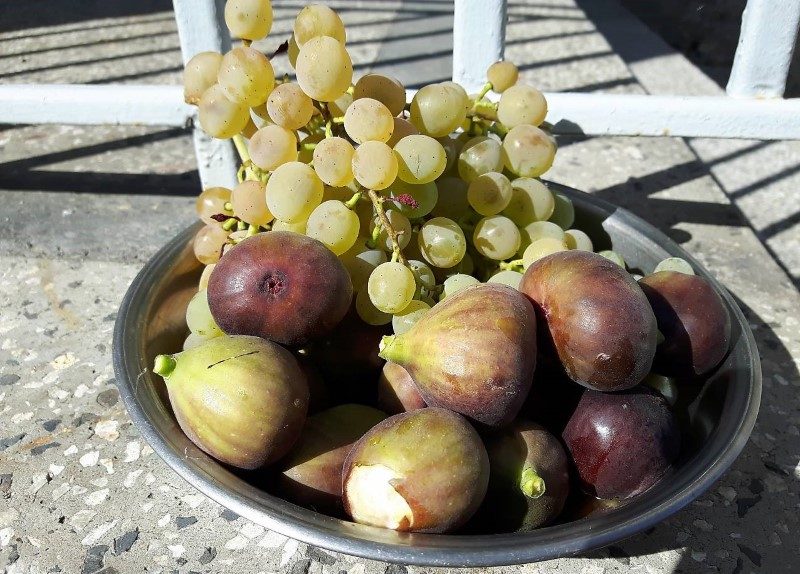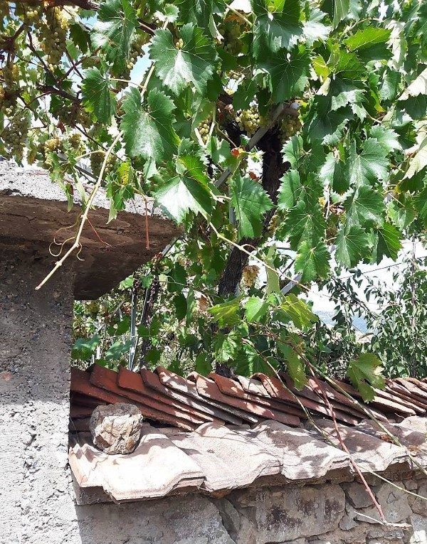 Es gibt auch ein großes Spalier mit verschiedenen Trauben sowie einen tiefen Brunnen, zwei Eingangstüren zum Grundstück (Süd- und Westeingang), einen großen Garagenschuppen und eine Außentoilette.