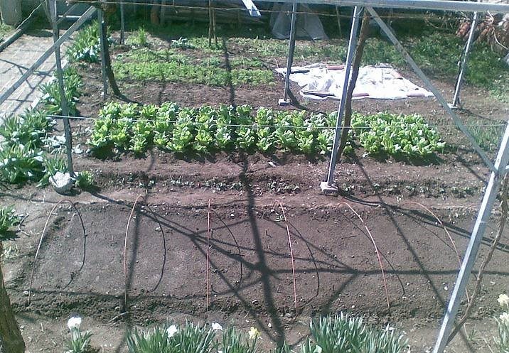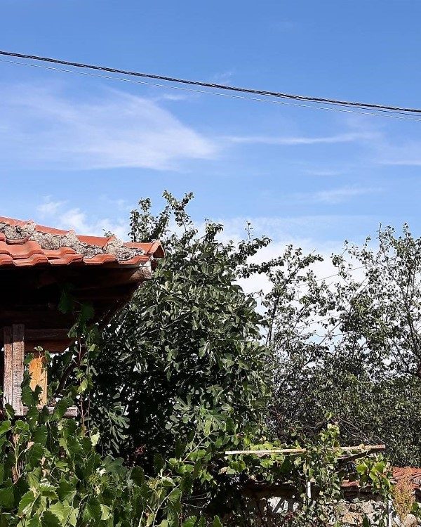 - Der Garten ist flach und mit Himbeersträuchern, Feigen, Birnen, Äpfeln und anderen Obstbäumen und Blumen angelegt.