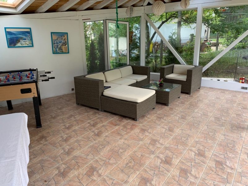 Das Haus ist möbliert, in sehr gutem Zustand und bezugsfertig. Es ist für das ganze Jahr geeignet und verfügt über eine lokale Heizung mit Pelletkessel und Computer sowie eine wöchentliche Zeitschaltuhr. Wohn- und Esszimmer haben Fußbodenheizung und die Räume werden mit Heizkörpern beheizt. Das Gebäude ist isoliert, mit neuen Fensterrahmen, latexgestrichenen Wänden und Decken, Parkett und Holzböden. Die Einbauküche umfasst - Kühl- / Gefrierschrank, Backofen, Dunstabzugshaube, Induktionskochfeld. Den Rest der Einrichtung können Sie auf den Fotos sehen. Internetverbindung und 24-Stunden-Videoüberwachung. Die Unterkunft nutzt eine Klärgrube. Die Gartengröße beträgt 555 qm, sehr gepflegt und mit automatischem Bewässerungssystem. Hier ist auch ein Schuppen von 35 qm. und ein Lagergebäude von 12 qm