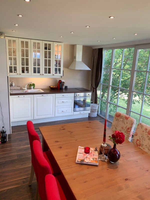 - Erdgeschoss: Eingangshalle, Wohnzimmer, Küche mit Essbereich, WC