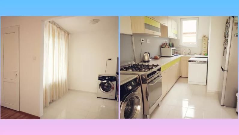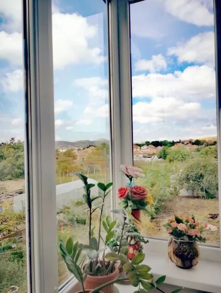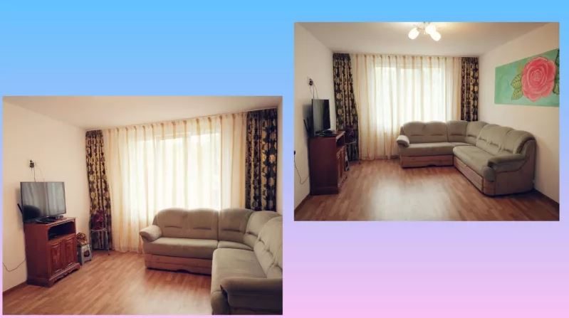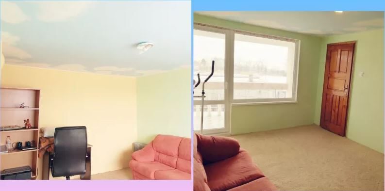 - Ersetzte Sanitär- und Elektroinstallationen, neue Sechs-Kammer-PVC-Tischlerei mit Dreiecksfenstern für vier Jahreszeiten, venezianischer Kitt, Farbe (das Kinderzimmer ist mit einer Decke wie der Himmel verziert), Terrakottafliesen, Laminatboden.