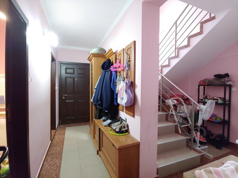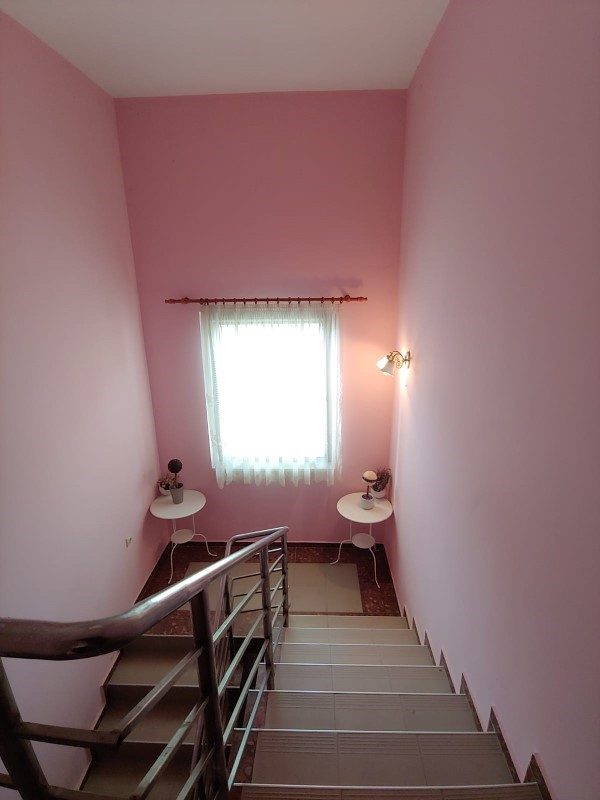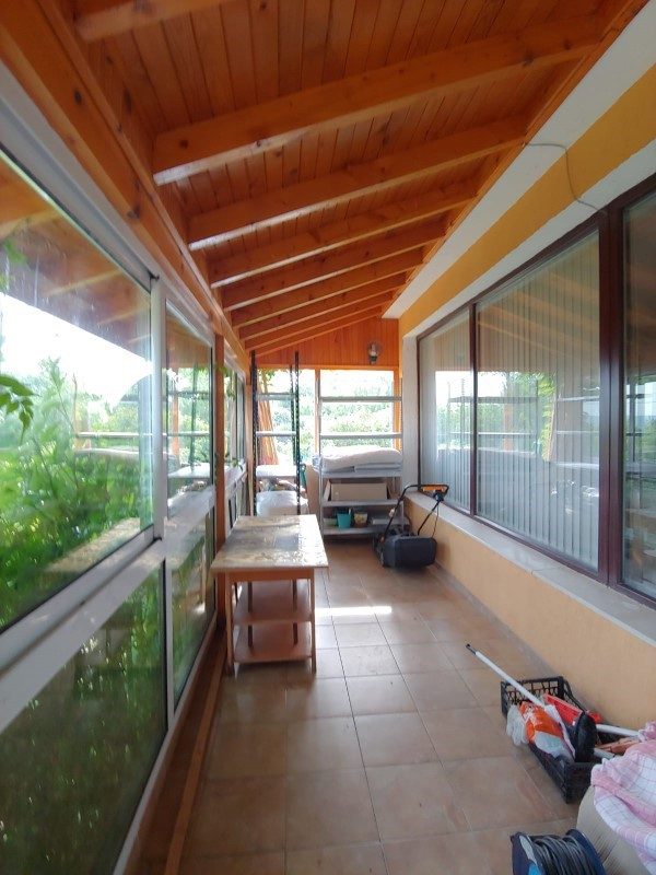 Das Haus hat eine Fläche von 263 qm , gebaut aus hochwertigen Materialien, mit externer Wärmedämmung. Im Erdgeschoss befinden sich: eine Eingangshalle, ein Badezimmer, eine Küche mit Backofen - Grill, ein riesiges Wohnzimmer mit Kamin, eine weitere Küche mit Esszimmer, ein Büro mit Kamin, eine Garage und eine riesige Veranda, In zwei Teile geteilt, einer ist komplett geschlossen, der andere ist offen mit Zugang zum Innenhof, mit vielen Blumen, Zierbäumen und Sträuchern. Im zweiten Stock befinden sich 5 Schlafzimmer, 3 Badezimmer, eine Waschküche und drei Terrassen.
