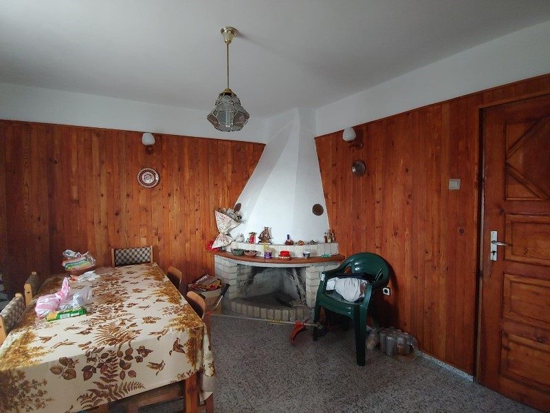 - Im Erdgeschoss befinden sich: eine Eingangshalle, ein Badezimmer, ein Schlafzimmer, eine Küche, ein Wohnzimmer mit großem Kamin, eine große Veranda.