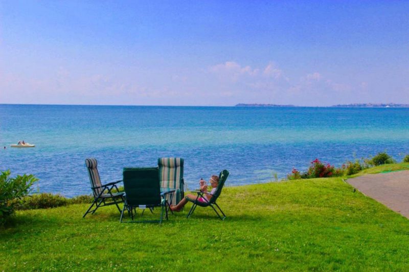 Wohnzimmer und ein Schlafzimmer mit direktem Meerblick.