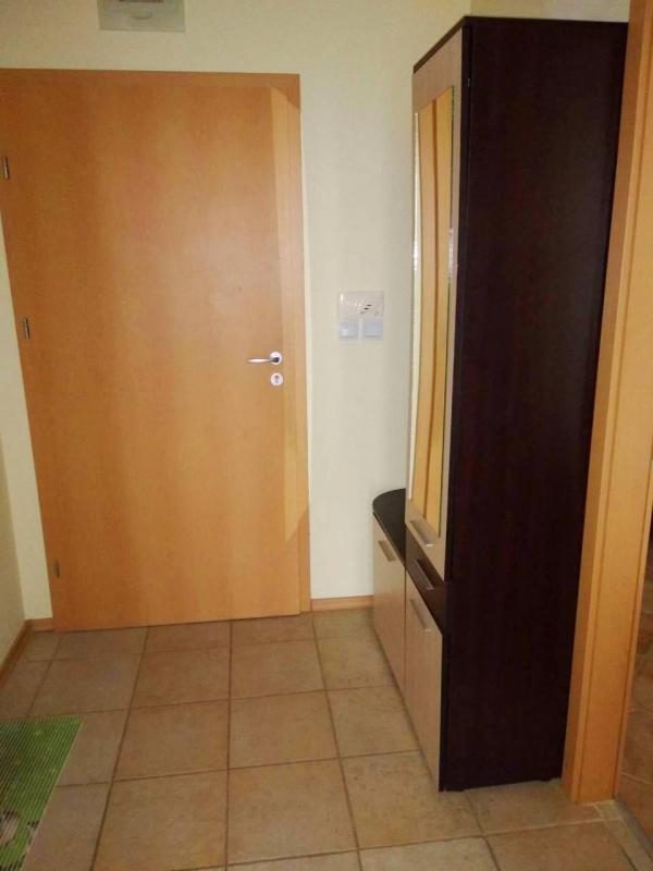 Layout - Eingang, geräumiges Wohnzimmer mit Küchenzeile, Schlafzimmer, Bad, große Terrasse vor beiden Räumen. Die Wohnung wird komplett möbliert mit einer ausgestatteten Küchenzeile verkauft.
