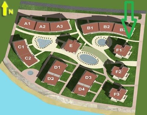 - Riesige Landschaftsbereiche machen den Komplex gemütlich und förderlich für einen erholsamen Urlaub. Fitnessraum und Outdoor-Trainingsgeräte