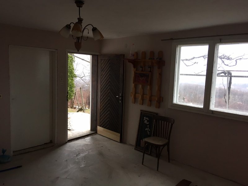 Die Villa ist aus Backstein, 2-stöckig und hat eine Gesamtwohnfläche von 60 Quadratmetern. Geräumiger Balkon im zweiten Stock. Das Gebäude befindet sich in einem guten baulichen Zustand, würde aber von einer Erfrischung im Inneren profitieren. Strom ist angeschlossen und verfügbar. Der Garten ist 870 Quadratmeter groß und gepflegt. Hier gibt es eine Außentoilette, ein Holzlagergebäude und einige Obstbäume. Das gesamte Anwesen bietet einen atemberaubenden Blick auf die umliegende Natur.