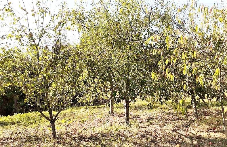 Der Garten hat Obstbäume, der Boden ist fruchtbar.