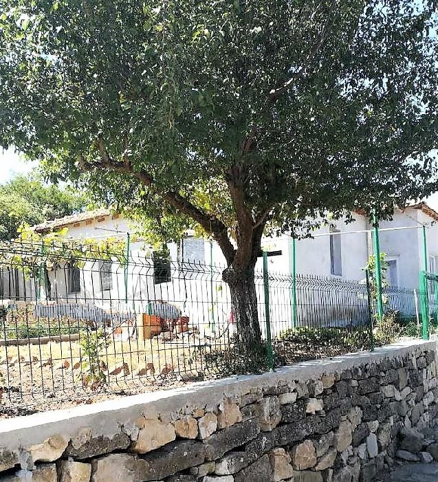 Auf dem Gelände: Weinberg, Obstbäume (Pflaume, Walnuss, Feige).